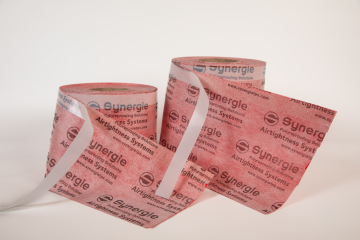Synergie FI-D AC + BU Window Tape is similar to the above, but comes with a 23mm butyl strip (BU) and a 23mm acrylic strip (AC) on each outer edge. The AC strip is adhered to the window frame, allowing the window tape to traverse across the cavity, to be sealed to the inner leaf blockwork using the 23mm butyl strip. We strongly recommend use of the Pressing Roller and Spray Primer to achieve a full, airtight seal. The tape is stocked in three widths, 125mm, 200mm and 250mm and comes in rolls 20 metres in length