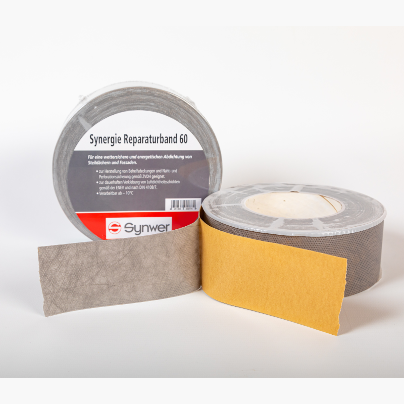 Synergie Grey Fleece PP Tape, available in 60mm width, is a adhesive tape in nonwoven fabric of polypropylene with highly performing adhesive acrylic glue. It is used to repair unintended tears in breathable membranes. It is also used for airtight sealing of the building envelope which need a following plastering, such as the adherence of the vapour control layer to dry, clean wall structures, that have been primed where required.